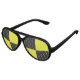 Funny crash test dummy party sunglasses. Fun props for Halloween costume, Birthday or bachelor parties. Aviator or Wayfarer style sunglasses with custom personalised text. Customisable frame colour and background colour.