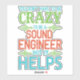 A funny music slogan in colourful bold text, you don't have to be crazy to be a sound engineer but it helps. Makes a great gift for someone who works as a sound engineer, mixer, tech, audio programmer, or in the entertainment industry.