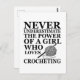 If you love crocheting or know someone who does, then this funny quote for crochet lovers is perfect for you or anyone who loves to crochet or even likes funny crocheting quotes. This original funny crochet quote and graphic design are perfect for starting beginners who want to study crocheting or experienced crafters looking to add something unique to their wardrobe It's also could be an original gift idea for a birthday or Christmas present for your best friend, relative, or girlfriend whose passion is crocheting, and this great quote will help them remember why they love it so much.