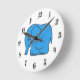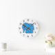Funny cross-stitch blue elephant round clock