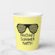 Funny custom paper cups for summer Birthday party. Add your own personalised text and name. Fun sunglasses design with cool typography. Great for celebrations with kids or adults. Also handy for other occasions like tropical wedding, summer BBQ, engagement, bridal shower, gathering, reunion, girls weekend and more. Disposable party supplies for home and office. Double sided print with yellow or other colour.