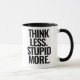 Funny Custom Text Think Less Stupid More black mug.