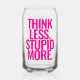 Funny Custom Text Think Less Stupid More Pink Can Glass