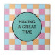 Cool, blue, orange white, and pink chequerboard pattern and a text template. To edit, click personalise and change the words.