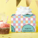 Cool, blue, orange white, and pink chequerboard pattern and a text template. To edit, click personalise and change the words.