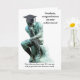 Customisable graduation card with the Thinker, thanks to PublicDomainPictures.net. Front says: "Graduate, congratulations on your achievement!" and "Now that you have your B.S. you are well prepared for the business world." Inside the Thinker has a hat and briefcase and the text is: "Get out there and put your B.S. to good use!" You can change the text, the fonts, colours of fonts and the background colour.