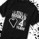 This fun 4th wedding anniversary design is perfect for fishing couples that have been married for 4 years and are still hooked on each other & love to go fishing! Great for a 4th wedding anniversary party to celebrate 4 years of marriage! Features "Still Hooked After 4 Years" wedding anniversary quote w/ heart shaped fish hooks with fishing graphic in a distressed vintage style design.