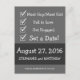Catch the attention of all your invited guests with this funny, cute, quirky, and unconventional Save-the-Date postcard that features a checklist of important events that lead up to the big day. Text is in a playful white font on light and dark grey.