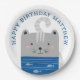 Cute Paper Plates with funny cartoon cat in blue for kids or baby boy birthday party.