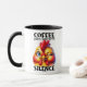 Elevate your morning routine with our Funny Cute Chicken Witty Coffee Quote Mug. Featuring a delightful design and the saying "Coffee pairs well with silence", this mug is the perfect addition to your collection. Start your day with a smile and a cup of coffee in this charming mug.