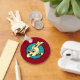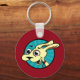 Funny cute dog illustration round basic button key chain. Background colour can be customised.