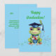 A cheerful, big-eyed frog wearing a tiny graduation cap, with a diploma in one hand. Above the frog, bold, playful text reads: "HOPPY Graduation!" 🎓🐸.
