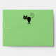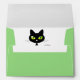 Humourous envelope shows a cool black cat with green eyes and a curling tail. The cat is shown on the front, back, and inside. Customise and personalise the address. Pair it with the matching change of address / moving cards and postcards. Cute, funny, cool, spooky design for those moving to a new home, change of address, cat lovers, kitten, and pet owners.
