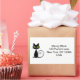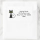 Humourous sticker labels show a cool black cat with green eyes and a curling tail. The name and address display to the right in a modern font. Customise and personalise the text.