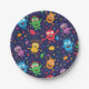 Funny Cute Monsters Pattern with Balloons Paper Plate
