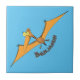 Funny cute orange flying pterodactyl cartoon tile