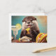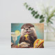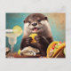 Funny Cute Otter With Osyster Tacos and Margarita Postcard
