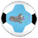 This funny rhino is juggling balls and riding a unicycle in happy cartoon illustration style.