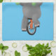 This funny rhino is juggling balls and riding a unicycle in happy cartoon illustration style.