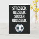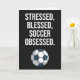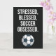 Celebrate the passionate young soccer enthusiast with this Funny Cute Soccer Cards Children Sports Kids Boy, featuring the relatable quote: "Stressed, Blessed, Soccer Obsessed." This themed card is a unique and humourous gift perfect for Christmas (Xmas), Thanksgiving, Halloween, birthday celebrations, White Elephant Gifts, or as a stocking stuffer. A playful alternative to traditional ornaments, this related gag present combines soccer passion with lighthearted humour, making it ideal for sports, player, team, goalie, coach, baby girl, baby boy, kids, teen girls, teen boys, teenagers, boys, girls, son, daughter, grandson, granddaughter, or any soccer lover.