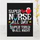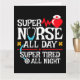 This funny nurse design is perfect for a hospital ER nurse, graduating student nurse, ICU nurse, RN Registered Nurse, Charge Nurse or any type of nurse that work as a super nurse taking care of patients all day but super tired all night! Features "Super Nurse All Day Super Tired All Night" funny nurse meme w/ heart & nurse hat graphic. Perfect for Nurse Appreciation Week, Nurses Month or nursing school graduation!