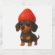 Funny dachshund with strawberries and hat fruity sparkling wine label
