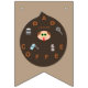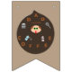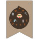 This awesome bunting features a cartoon of a Dad who is a coffee monster. His face is inside a big droplet of coffee and he has a creepy tongue and is starting to go bald. Sugar, milk, coffee and a spoon surround him, everything he needs for his favourite drink. The light brown text says, “Dad loves coffee”.