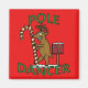 One of Santa Claus's reindeer - Dancer - is grinning and dancing around a candy cane at the North Pole. This is the perfect humourous magnet if you're looking for a funny, cheesy cartoon pun for Christmas / the holiday season. Red background colour is customisable.