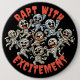 If you find Hallowe'en to be one of the most fun-filled days of the year, then this whimsical button, which features the punny observation "Rapt with Excitement" styled in a creepy font in pumpkin orange and cute AI-generated overjoyed dancing mummies celebrating their big night--is perfect for the spookiest time of the year!