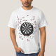 Creative dart player t-shirt featuring unique dart board and hearts design with the word: Aimless.