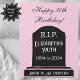 Surprise a special woman with this Death to My Youth Milestone Birthday Fleece Blanket, a cosy and hilarious gift for those with a love of dark humour. Featuring a soft blush pink background, the blanket displays 'Happy Birthday!' in beautiful script calligraphy. Below, a black tombstone reads 'R.I.P. [Person's Name]'s Youth [Year of Birth - Milestone Year]' and 'Death to My [Twenties, Thirties, Forties, etc.],' adding a funny, morbid touch. All text is fully customisable to suit any milestone (30th, 40th, 50th, 60th, etc.)