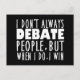 Funny Debate Team Winner Gift. I Don't Always Debate People, But When I Do I Win is a cool speech and debate humour quote. A great debating coach present for a master debater after a competition.