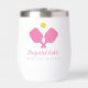 Who's your designated dinker? Funny wine tumbler features crossed Pickleball Paddles, a ball and 2 lines of personalised text. Perfect as a club or tournament award, gift for your pickleball bestie friends, a pickleball trip memento, drink ware for apres pickleball gatherings and just everyday pickleball fun! Easily change the paddle, ball and text colours.