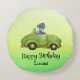 Funny dinosaur antique car birthday School boy Round Cushion
