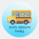 Funny dinosaur Back To School Bus boy Birthday Classic Round Sticker