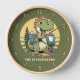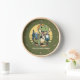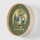 Create a cute personalised clock with an outdoorsy design that features a funny dinosaur outdoors on the green background. Type your Family name to create a unique home decor.