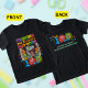 Marking 100 days of driving my teacher delightfully mad with a funny, cute, zany, and cheeky dinosaur makes for a hilarious school-day celebration. The back can be personalized with a grade, teacher’s name, or the kids’ names and school, adding an extra splash of charm. Bursting with color and fun, this design pops best on crisp white or vivid printing colors.