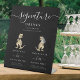 Add a touch of Jurassic fun to your big day with this funny dinosaur-themed wedding welcome sign featuring a whimsical watercolor illustration of a T-Rex bride and groom in warm brown and beige hues ideal for a Jurassic destination wedding all set against a sleek black background, this unique custom wedding signature drinks sign is the perfect blend of humour and elegance.