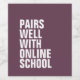 Distance learning during a pandemic isn't really funny but this wine label is. When you're at home and want to send something funny to a friend, this wine label that says "pairs well with online school" on a teal background is perfect for both parents and teachers. The text and colour are editable so you can make it say whatever you want!