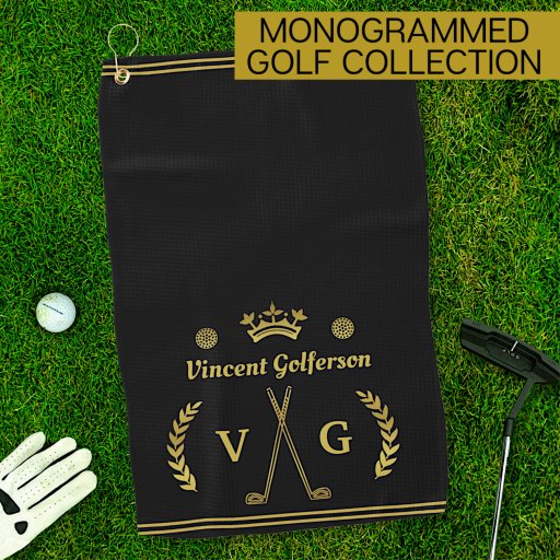 These golf towels make the perfect gift for a doctor who loves to play the game. Personalised with the doctor's name and initials, the design also includes golf clubs, balls, a crown, a laurel wreath and the phrase "Turn Your Head and Golf." The design is made in all white on a midnight blue background. Customise / Personalise Further to change the background colour.
