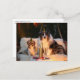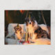 The design features a funny photo with 2 dogs sitting on a cosy chair with glasses and bottle of a festive drink. At the back you can add your address, name and a custom message.