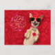 Funny Dog in Red Rose Petals Happy Valentine's Postcard
