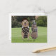 Customisable postcard with a 90 lb. Lab in an argyle sweater with golf clubs. You can adjust the images and customise the text.