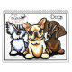 Twelve original hand drawn illustrations by Andie of Off-Leash Art depicting different dog breeds in funny poses. Fun for canine lovers of all ages.