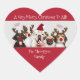For Dog Lovers and those who love to laugh! A funny heart-shaped sticker with text: A Very Merry Christmas To All, and your family name. Designed with 5 cute dogs wearing festive red noses and Reindeer Antlers. To personalise, simply replace the sample text using our easy template. A great addition to your Christmas Card Mailings, Packages, or anywhere. Enjoy!