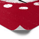 A cute drawn dog in black and white over a red textured background surrounded with white dots.