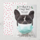 Your friends and family will get a laugh with this holiday card featuring a photo of a French bulldog wearing a mask (or upload your photo) and text that reads "Goodbye to a Crazy Year, hello to more fun and treats". Add your custom greeting and names below. Perfect for a dog lover or anyone with a sense of humor.