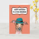 A fun and eye-catching design of an Italian Greyhound dog wearing a vintage style teal blue hat set against a background color of your choice that has a scallop edge speech bubble with the words, happy birthday to a fine specimen! The inside reads, may you continue to mature like a fine wine! Ideal for both men and women that are dog lovers.