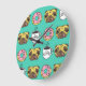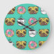 funny Vintage dogs pug puppies pattern doughnut coffee background