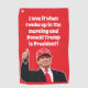 Funny meme quote golf towel for men or women featuring President Donald Trump! Celebrate the victory win of President Donald J. Trump's election as 45th and 47th president with this quote keepsake apparel merchandise. This funny pro-Trump gift is great for the Trump supporter republican conservative patriot. "I love it when I wake up in the morning and Donald Trump is president!" with a cute picture of thumbs up President Trump. Show your love for the 45th President of the USA with this funny hilarious and humourous merchandise, perfect conversation piece for co-workers and friends at the office, Republican white elephant gift exchange party or around the house.